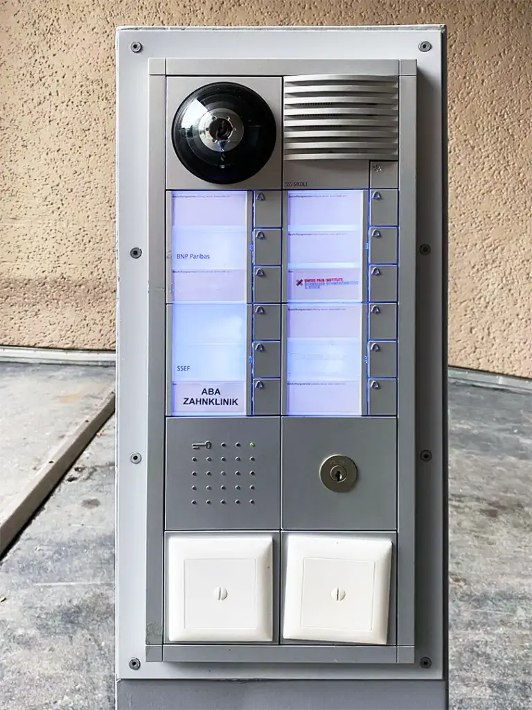 Die Zufahrt der Tiefgarage der ABA-Zahnklinik, befindet sich auf der Rückseite unseres Gebäude (Hirschgässlein 23).